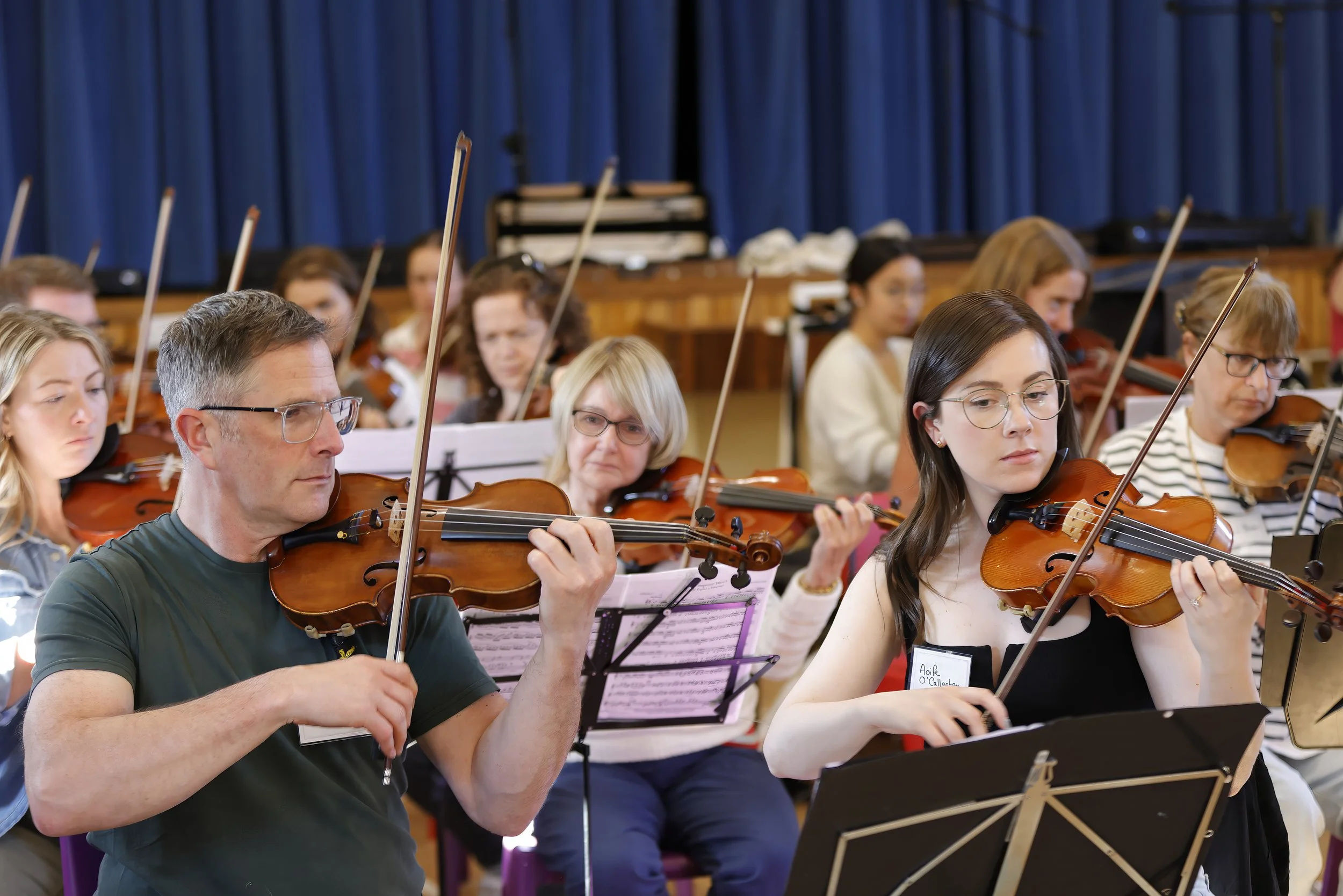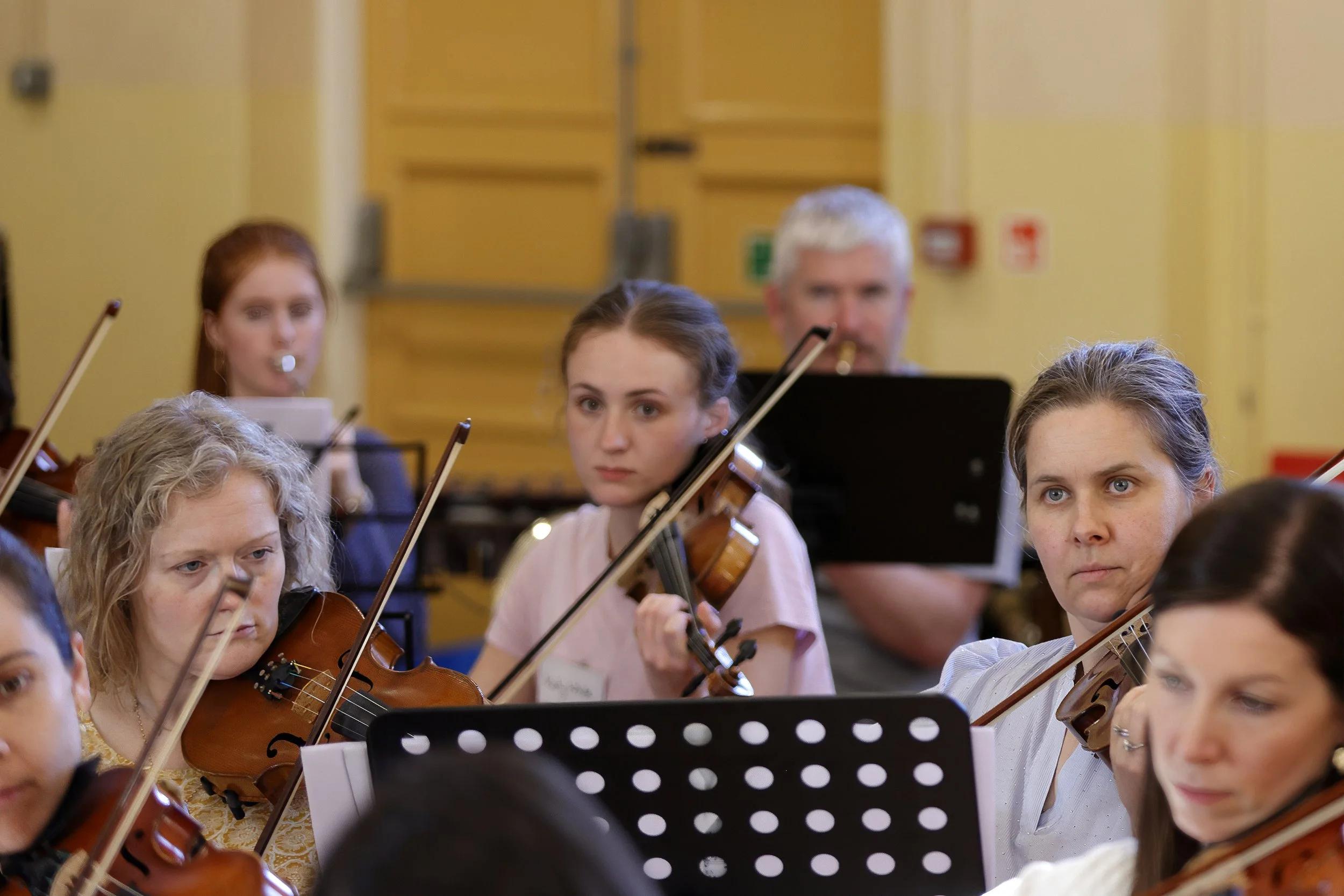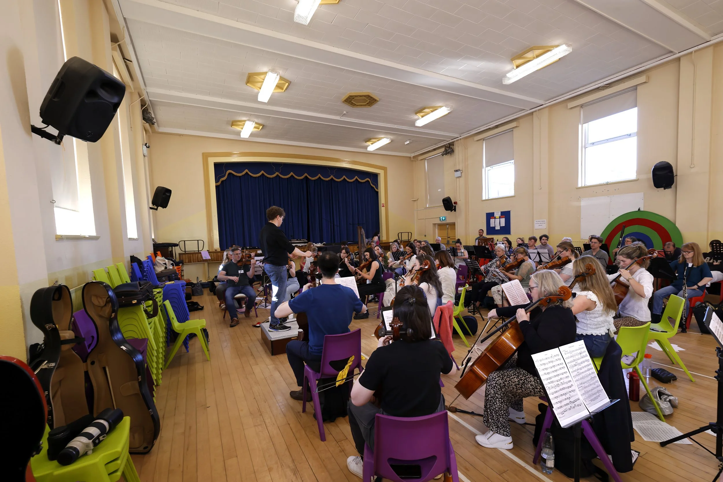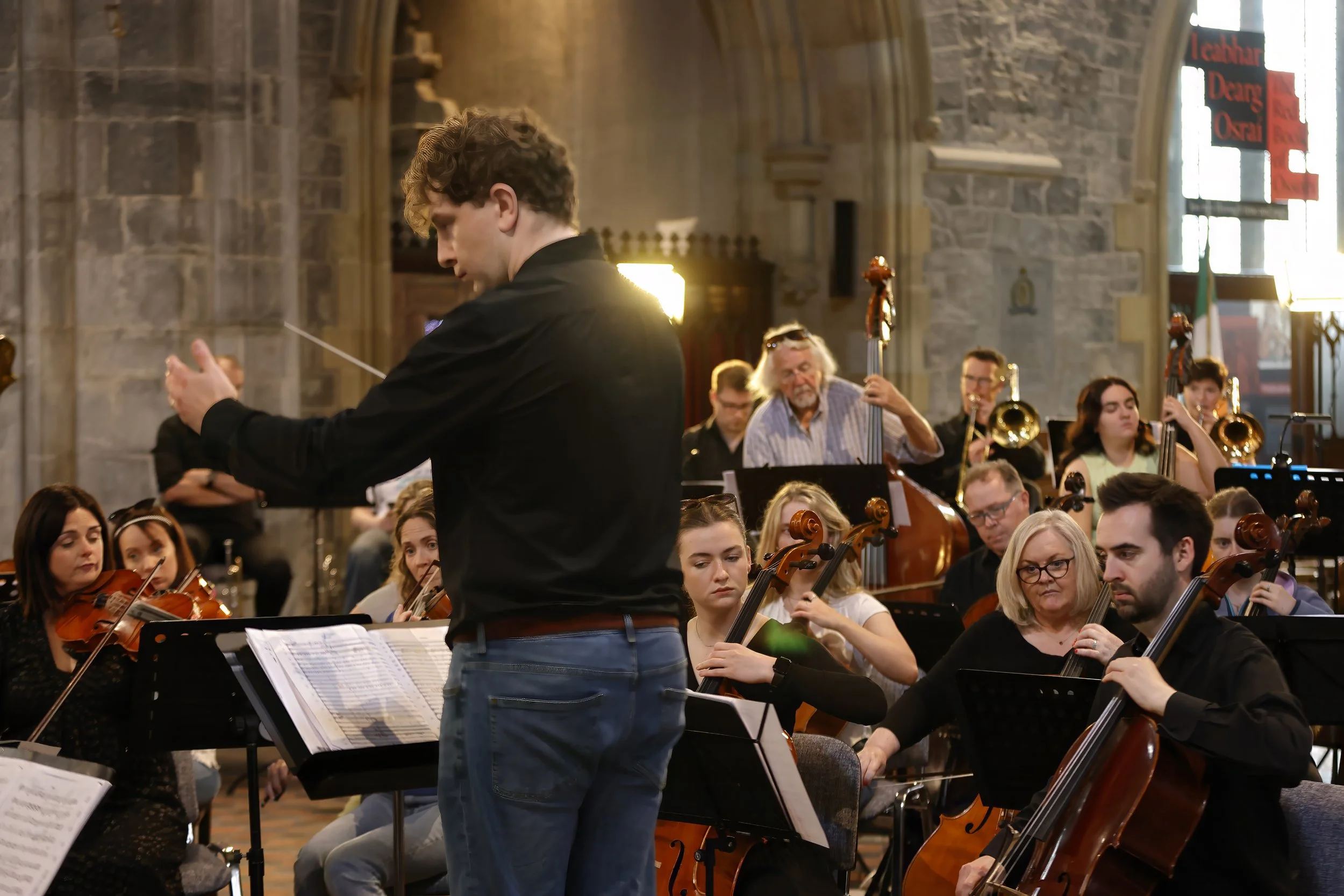Our members gathered in Kilkenny on Friday, 9 May 2025 for the sixth edition of the Irish Doctors Orchestra (IDO), as part of the Marble City Music Festival, coordinated by conductor and soloist Patrick Rafter. Rehearsals took place in Presentation Primary School, with strings only on Friday morning, followed by tutti after lunch. We were delighted to have Patrick Rafter as both conductor and soloist for this project, bringing with him a wealth of knowledge and palpable enthusiasm for the music. The morning’s string session quickly set the tone for the weekend, with smiles already appearing on many participants’ faces.