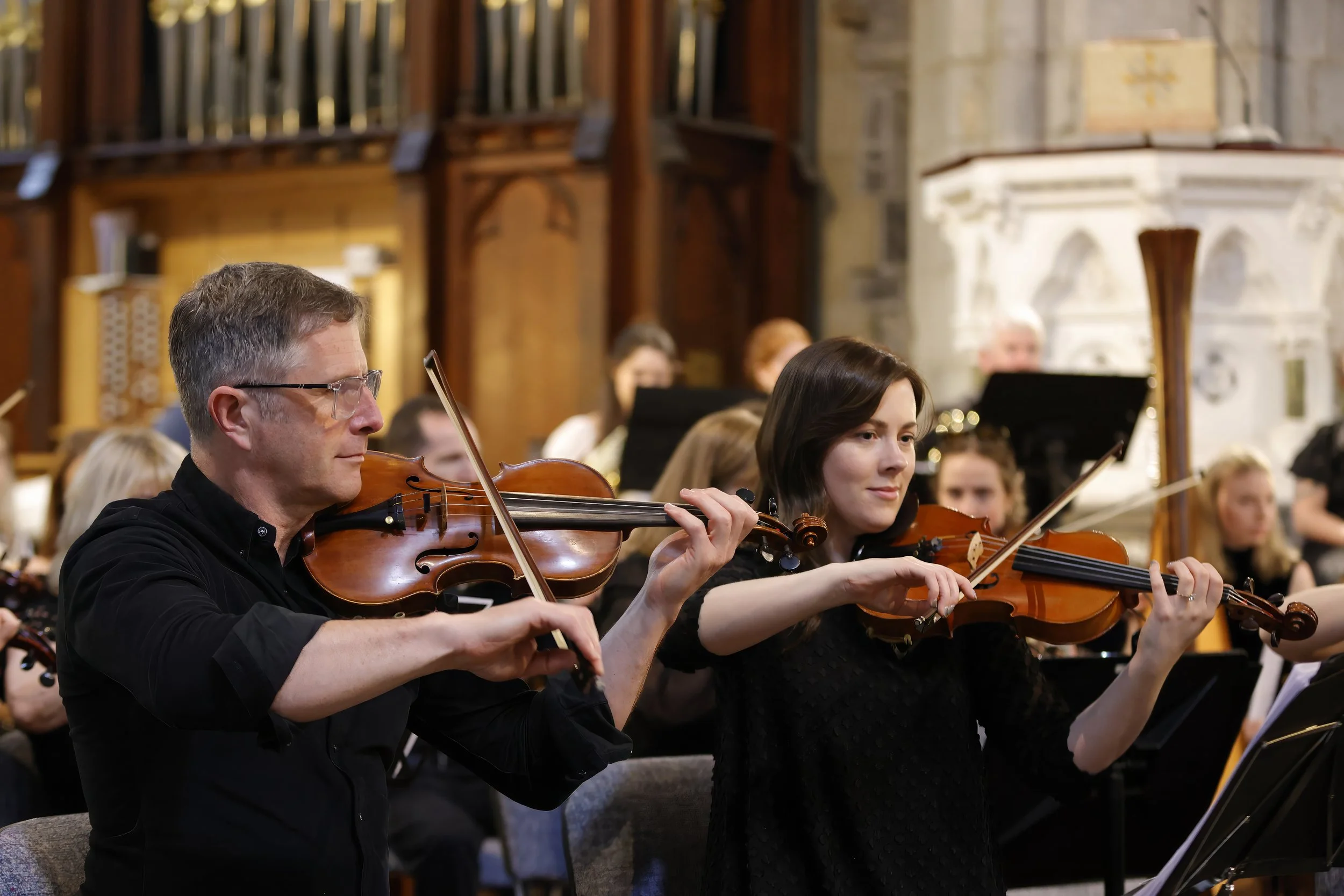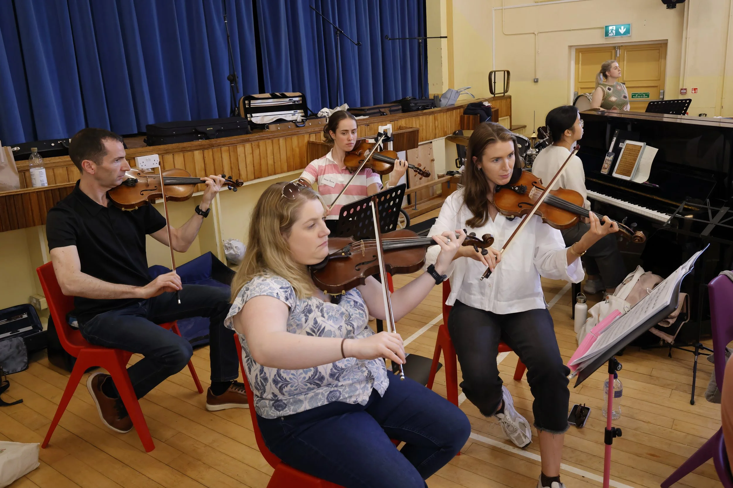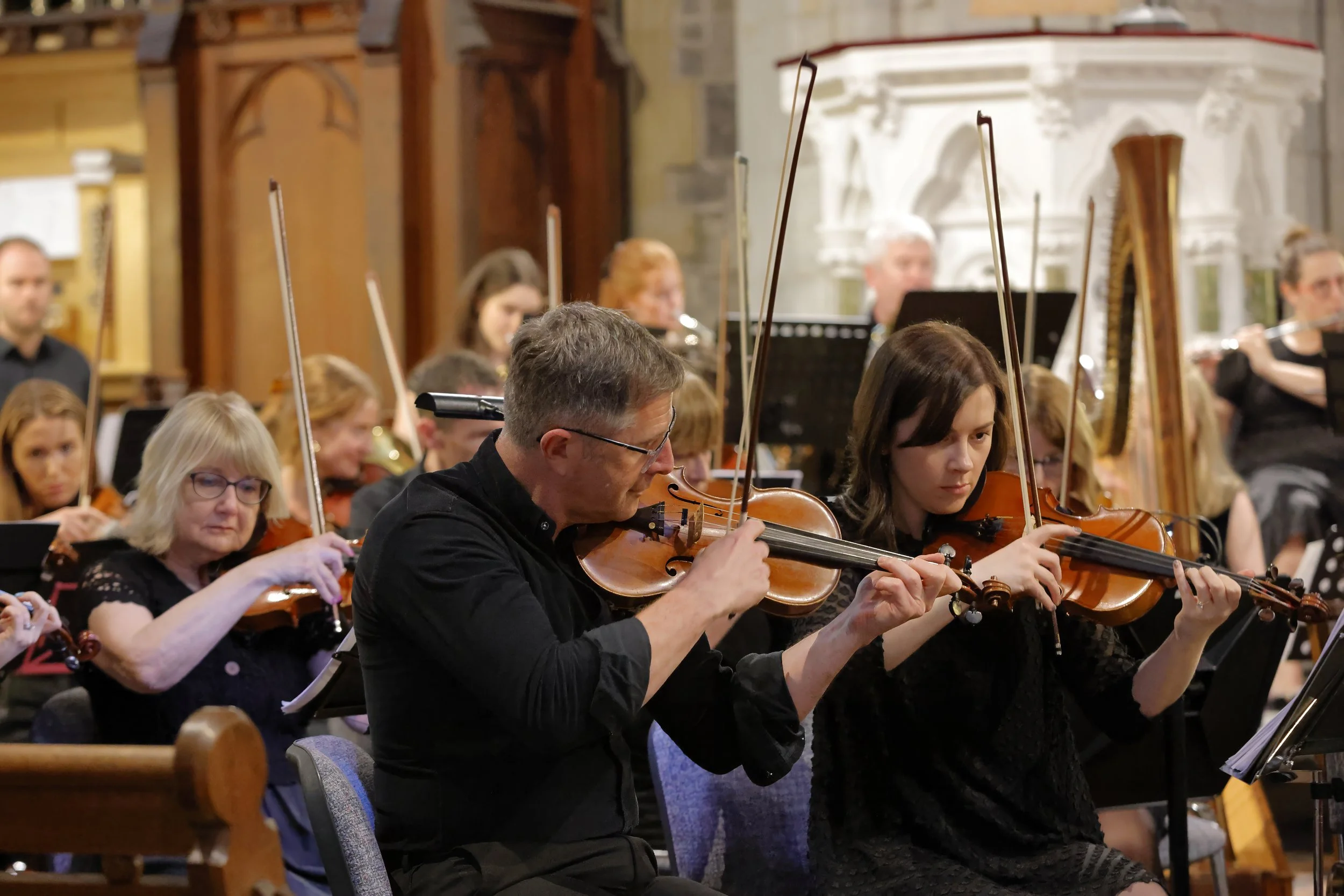 Our members gathered in Kilkenny on Friday, 9 May 2025 for the sixth edition of the Irish Doctors Orchestra (IDO), as part of the Marble City Music Festival, coordinated by conductor and soloist Patrick Rafter. Rehearsals took place in Presentation Primary School, with strings only on Friday morning, followed by tutti after lunch. We were delighted to have Patrick Rafter as both conductor and soloist for this project, bringing with him a wealth of knowledge and palpable enthusiasm for the music. The morning’s string session quickly set the tone for the weekend, with smiles already appearing on many participants’ faces.