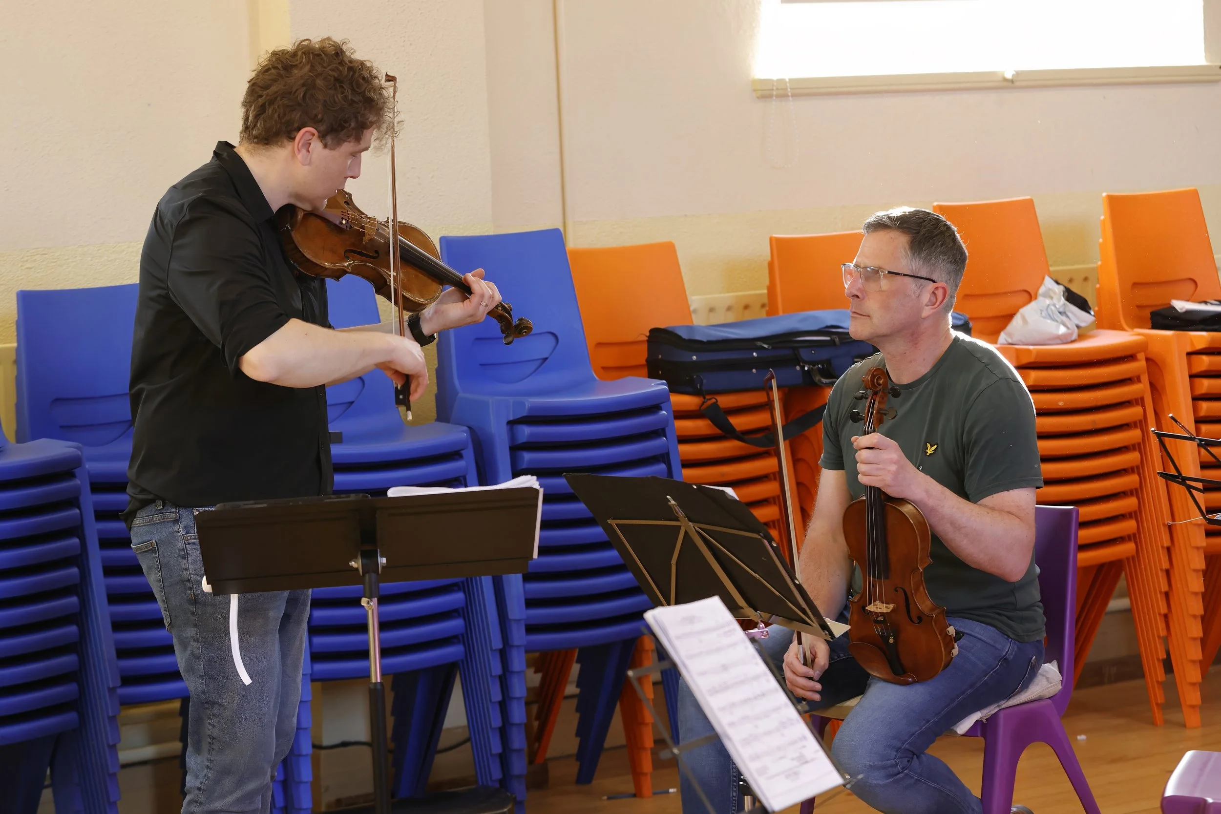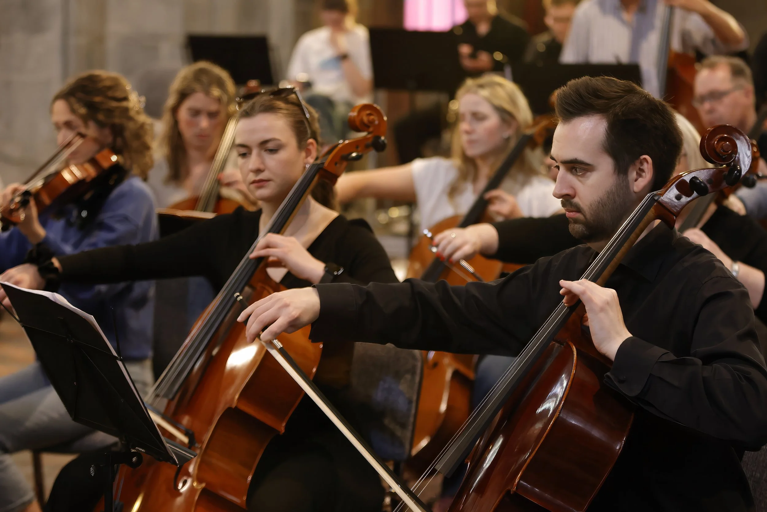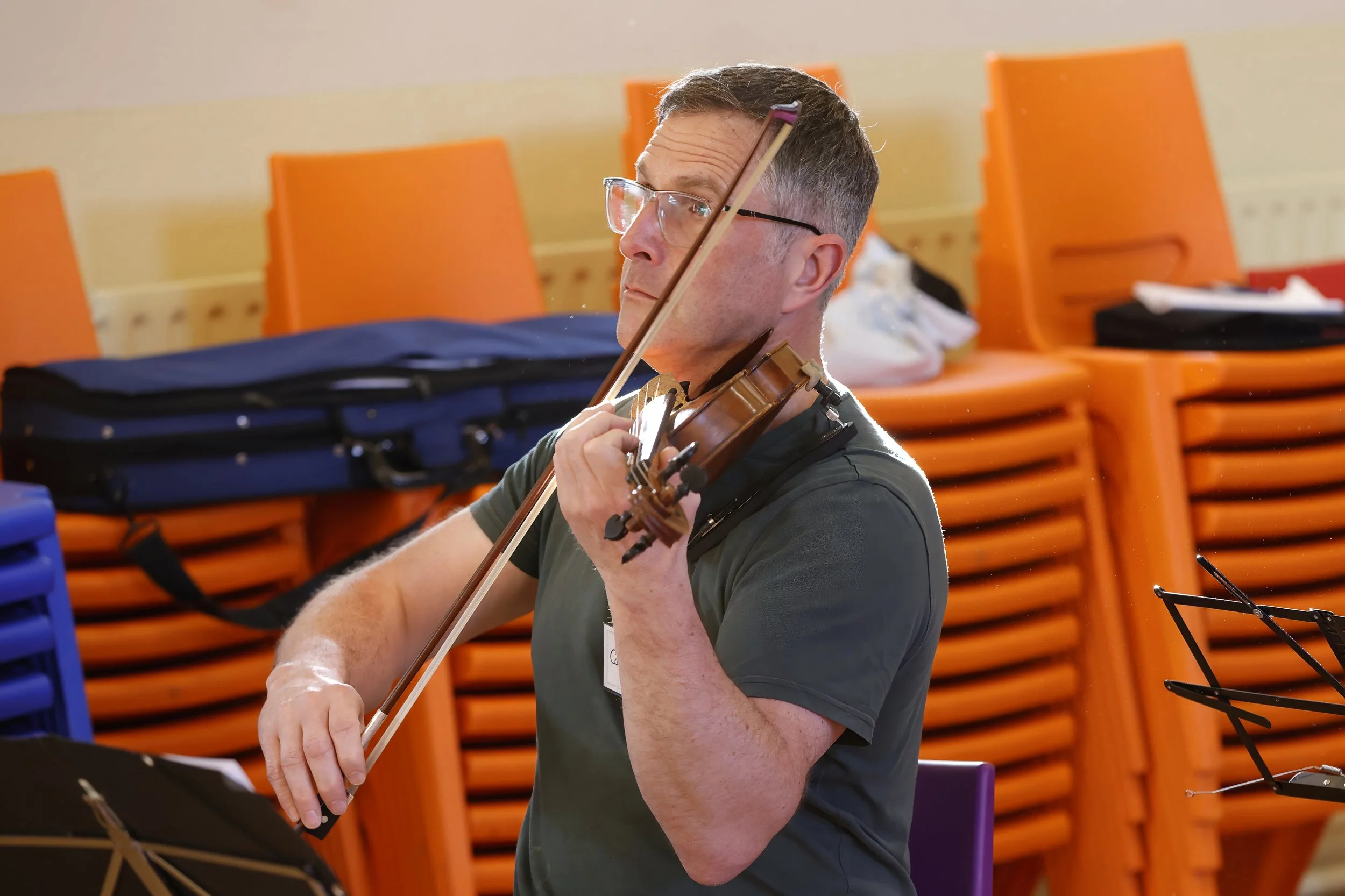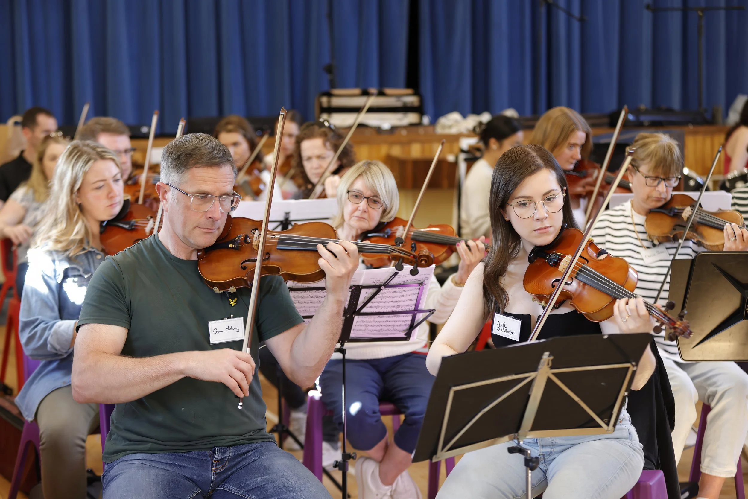 Our members gathered in Kilkenny on Friday, 9 May 2025 for the sixth edition of the Irish Doctors Orchestra (IDO), as part of the Marble City Music Festival, coordinated by conductor and soloist Patrick Rafter. Rehearsals took place in Presentation Primary School, with strings only on Friday morning, followed by tutti after lunch. We were delighted to have Patrick Rafter as both conductor and soloist for this project, bringing with him a wealth of knowledge and palpable enthusiasm for the music. The morning’s string session quickly set the tone for the weekend, with smiles already appearing on many participants’ faces.